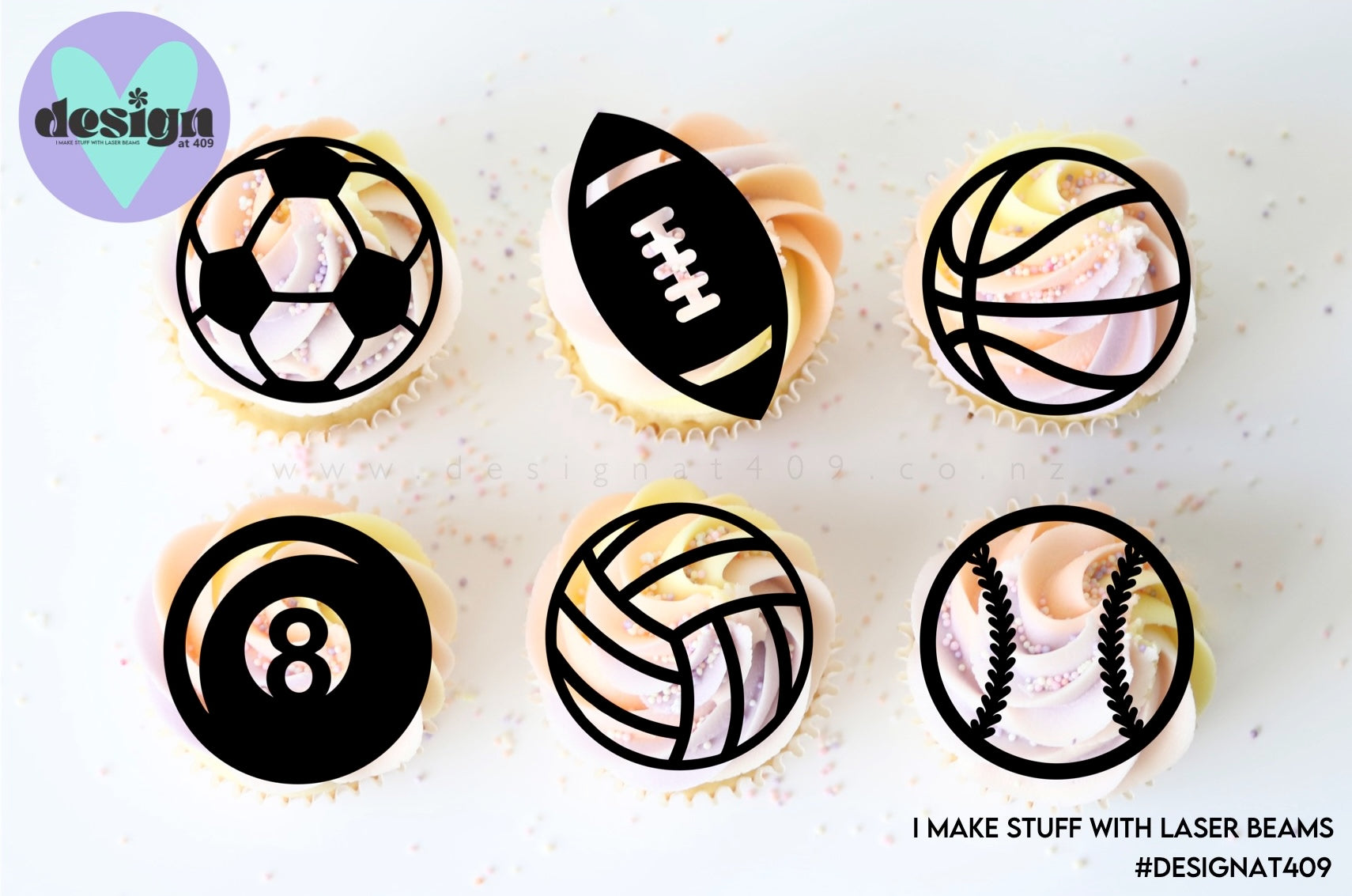 Sports Ball Themed Cut Out Cupcake Topper. Can be cut in any of the colours available in the drop down material options. Sold Individually.