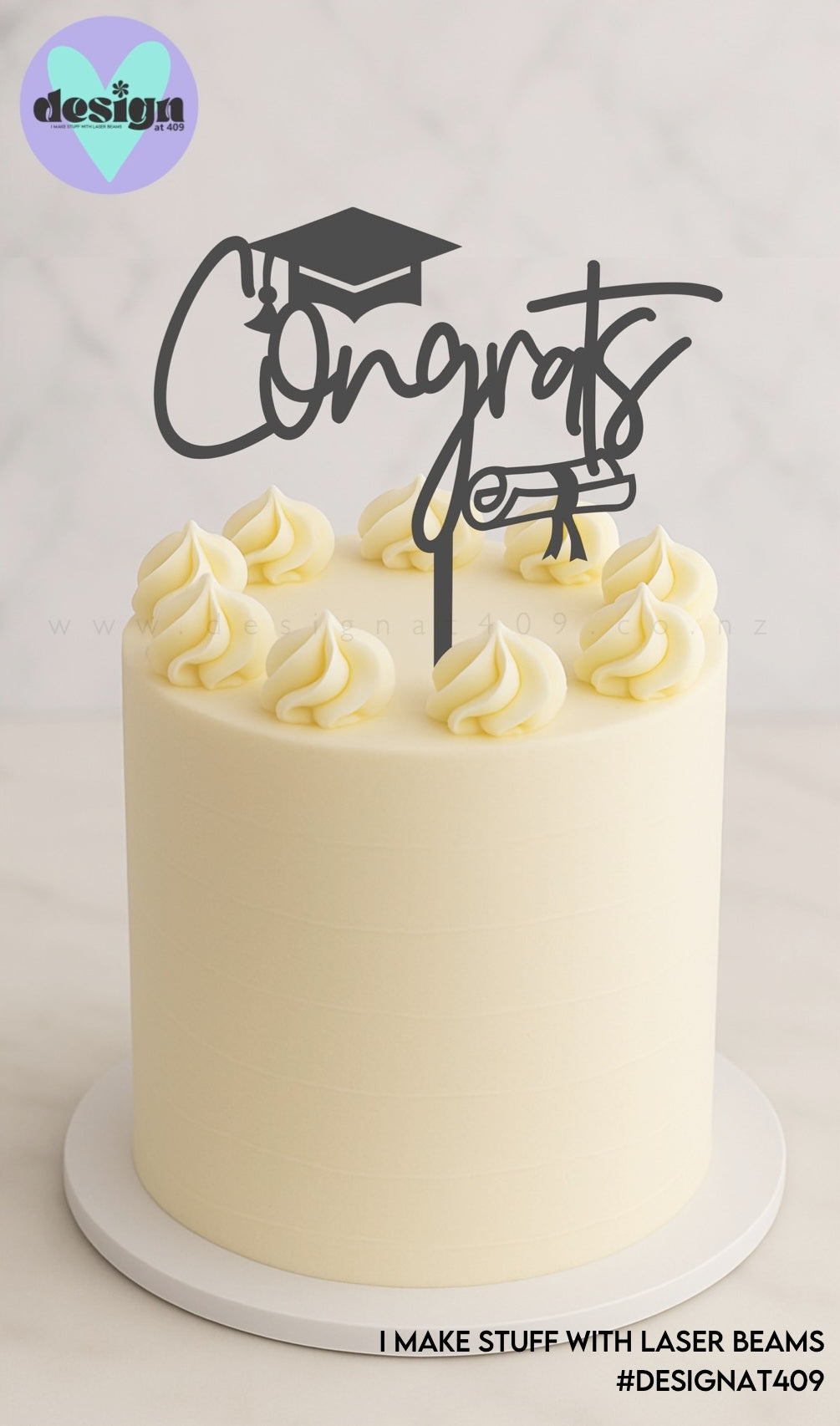 Congrats Graduation Themed Cake Topper. Can be cut in any colour/materials available in the drop down material options.