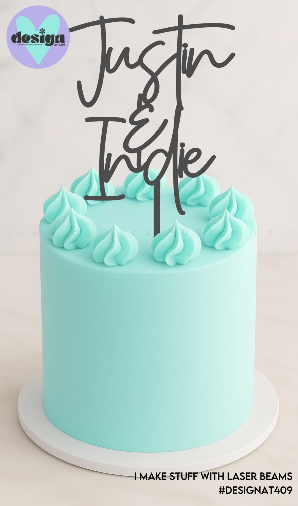 Quality laser cut cake topper. All designed and laser cut in house by Design at 409.