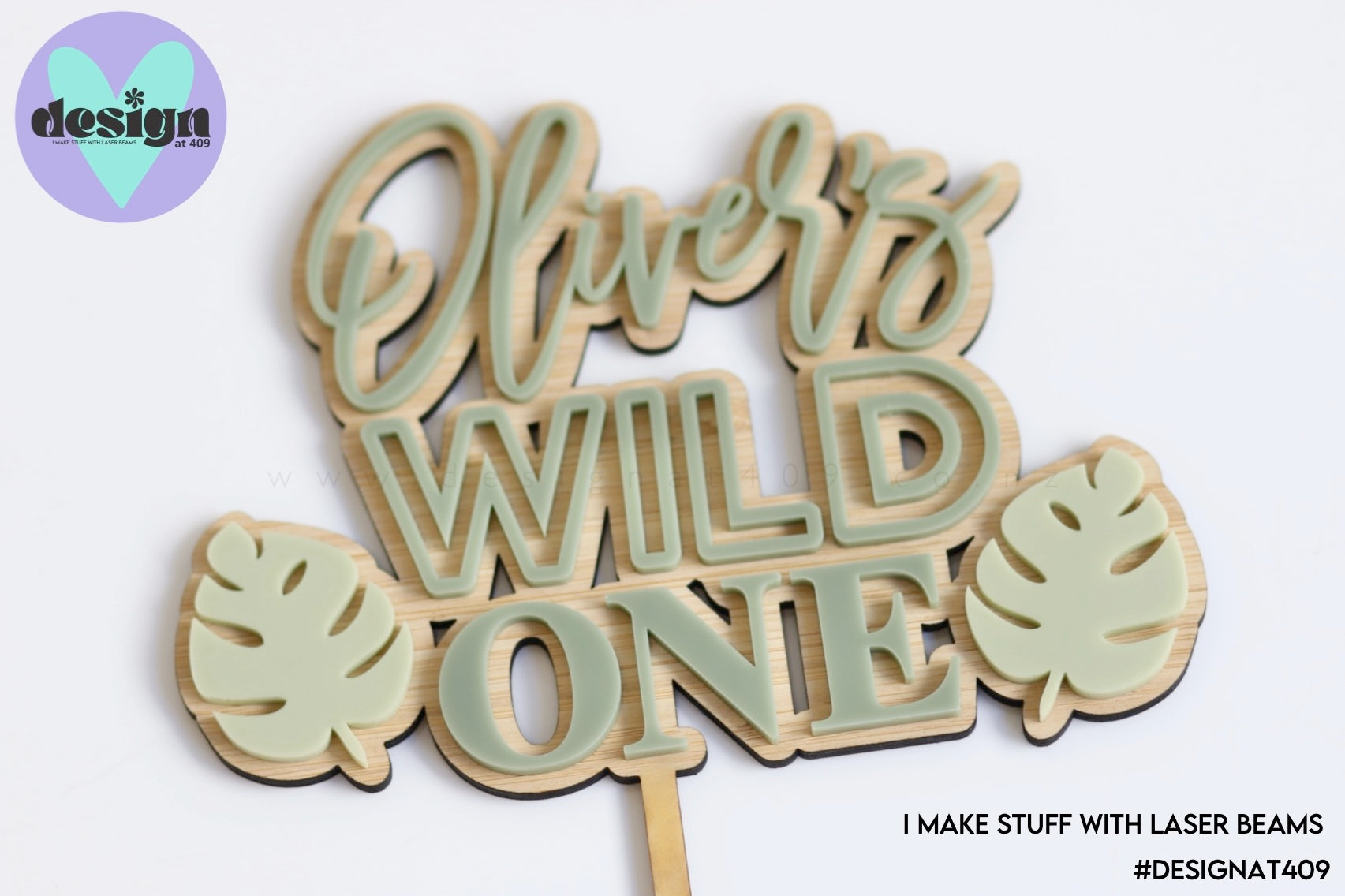 Listing is for a 'Custom Name's Wild One' Layered Cake Topper. You can choose back/wording/leaf colour.