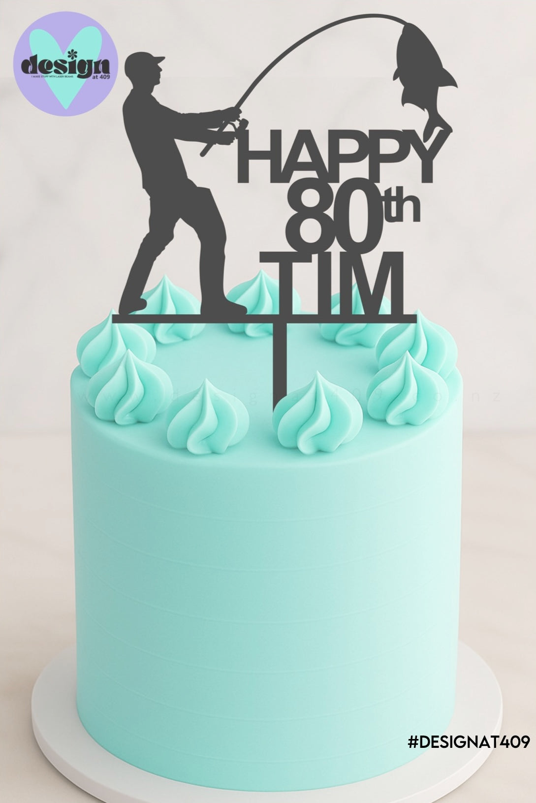 Happy Custom Age & Name Fishing Cake Topper (other colour choices available)