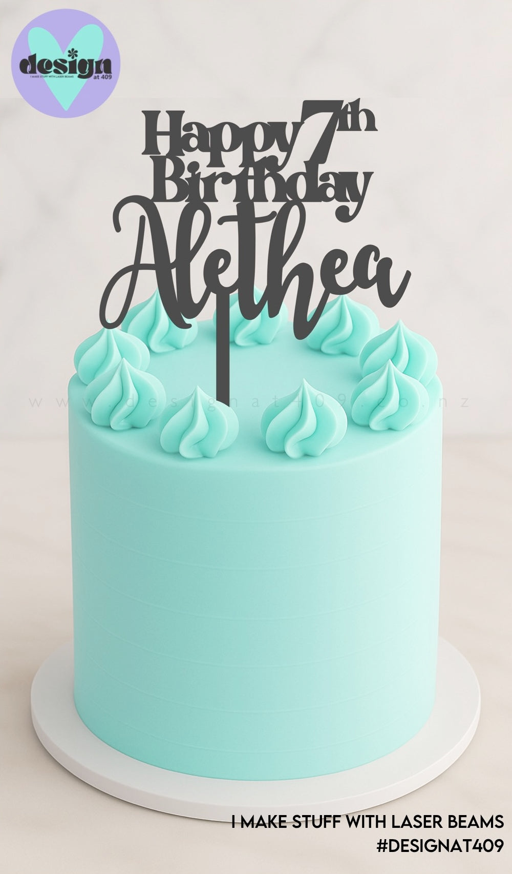 Quality laser cut cake topper. All designed and laser cut in house by Design at 409.