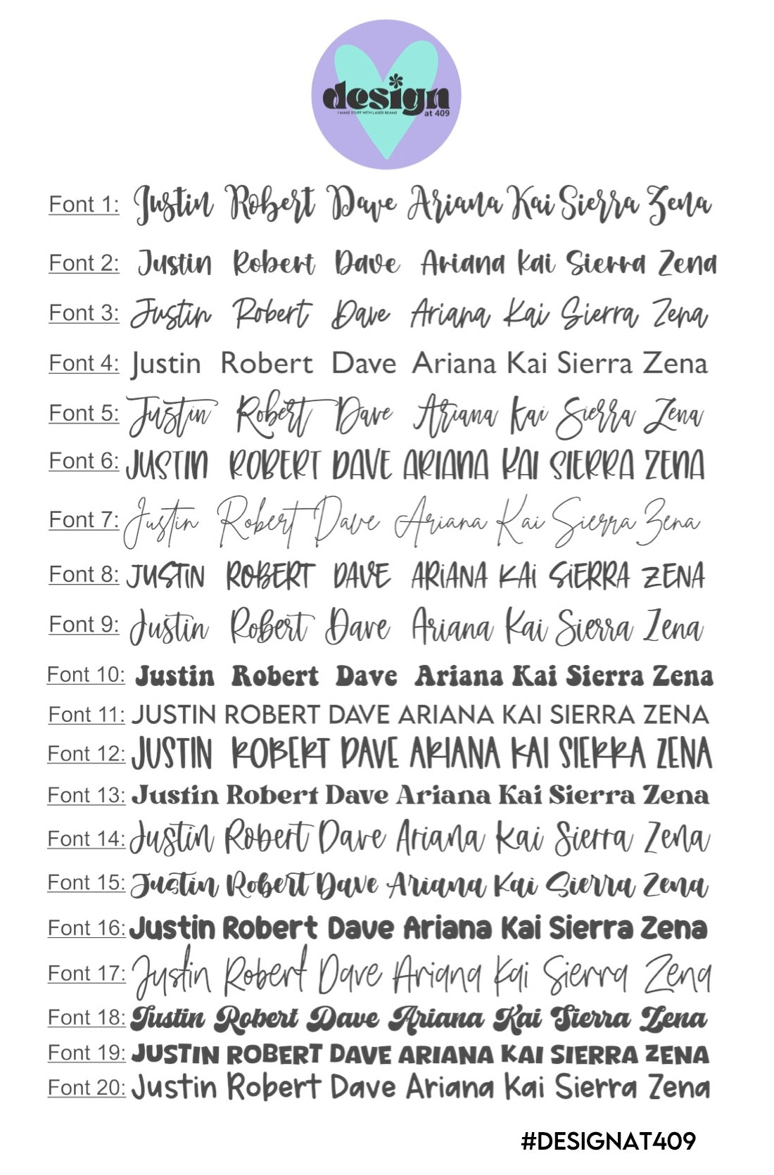 Drafts: With these custom options I DO NOT send a draft of the name stamp. But if you need one, please ask.
