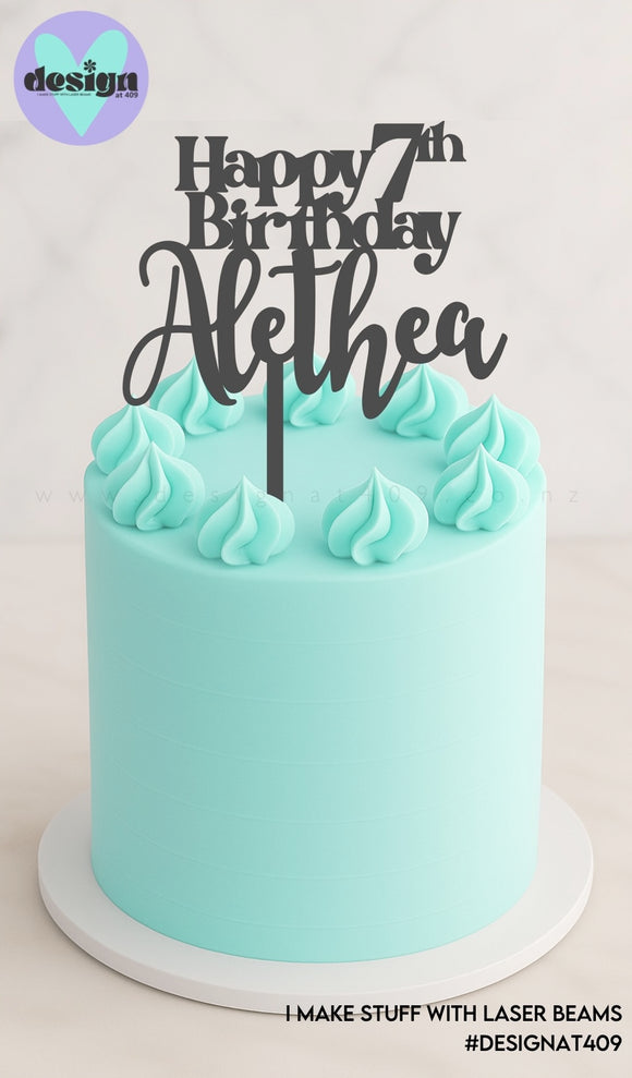 Custom Happy Age And Name Cake Topper Style 2 (other colour choices available)