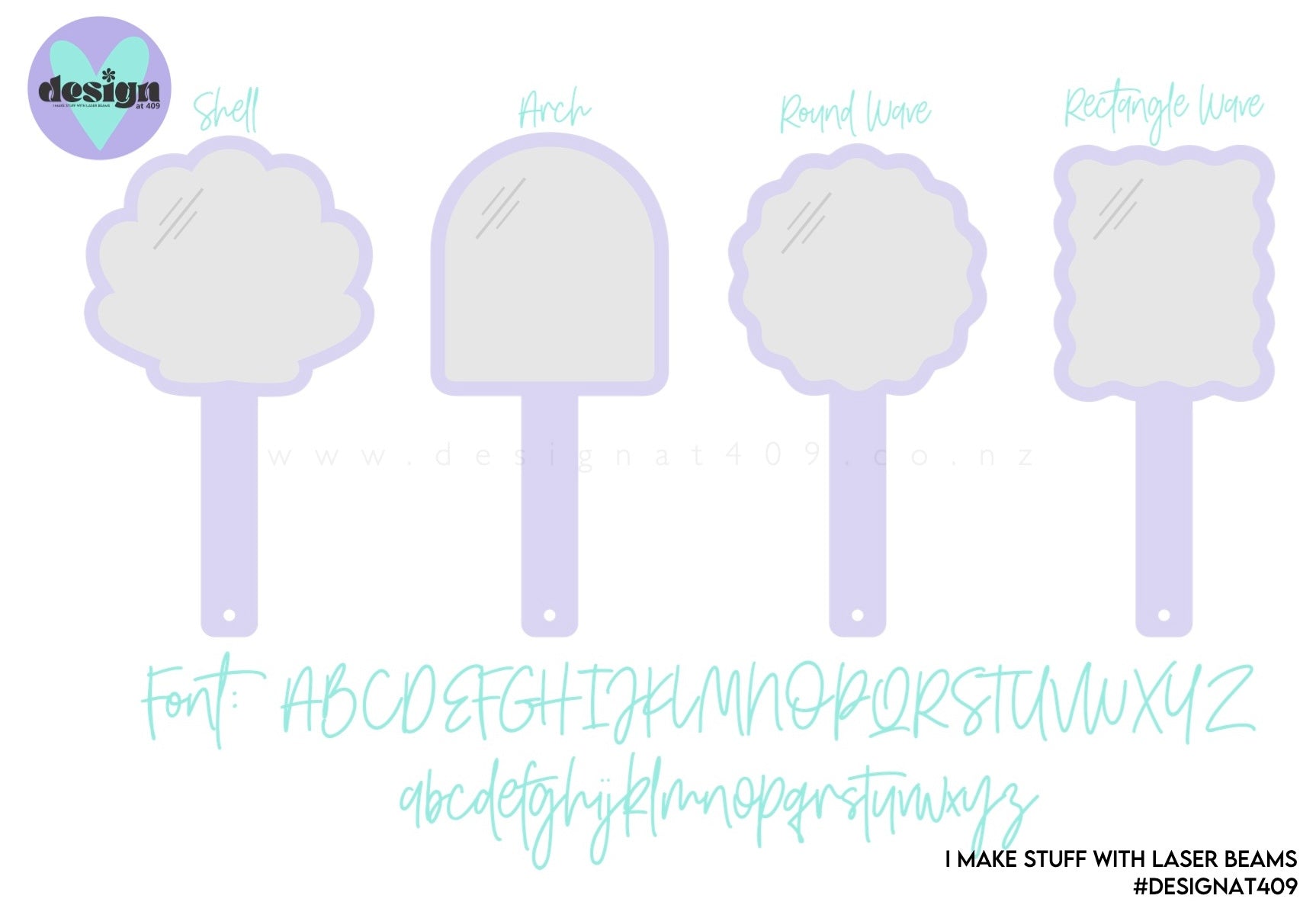 Shapes as shown in the pics. Font as shown, longer names will appear smaller. Mirror is always silver mirror acrylic.