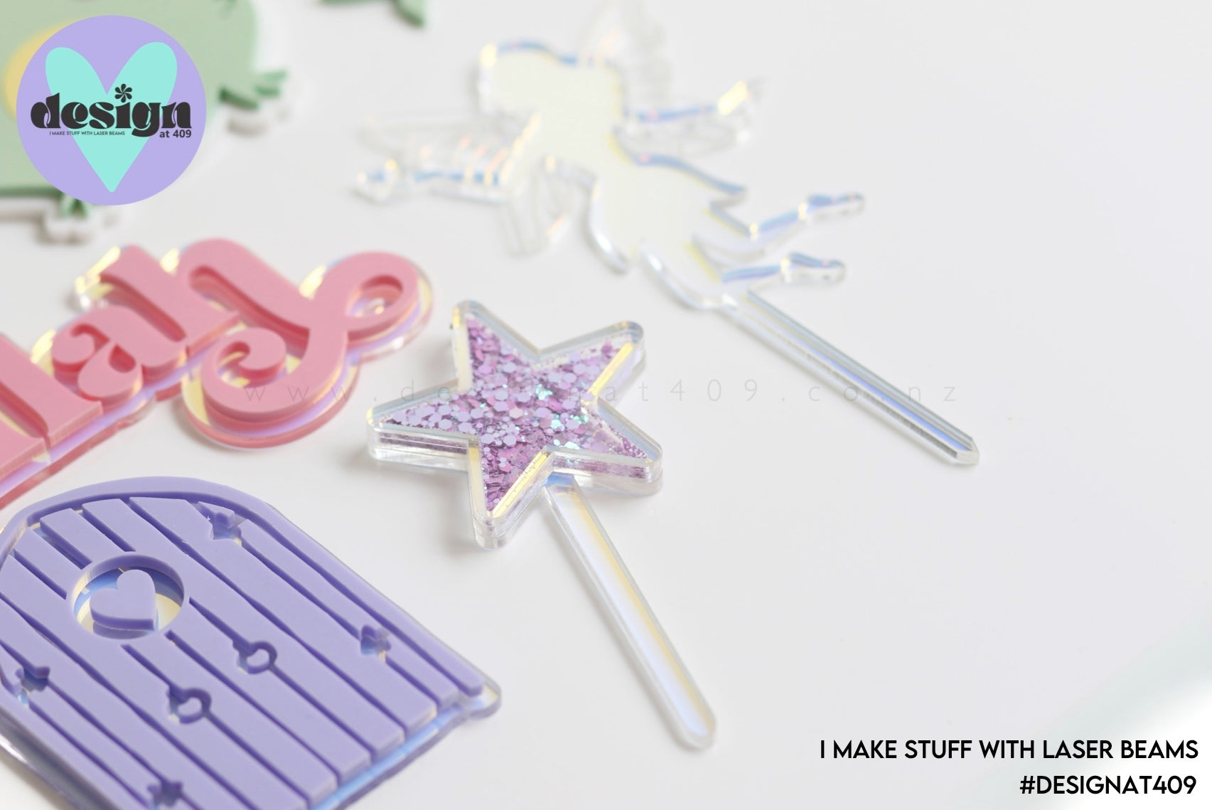 Quality laser cut cake deco. All designed and laser cut in house by Design at 409.