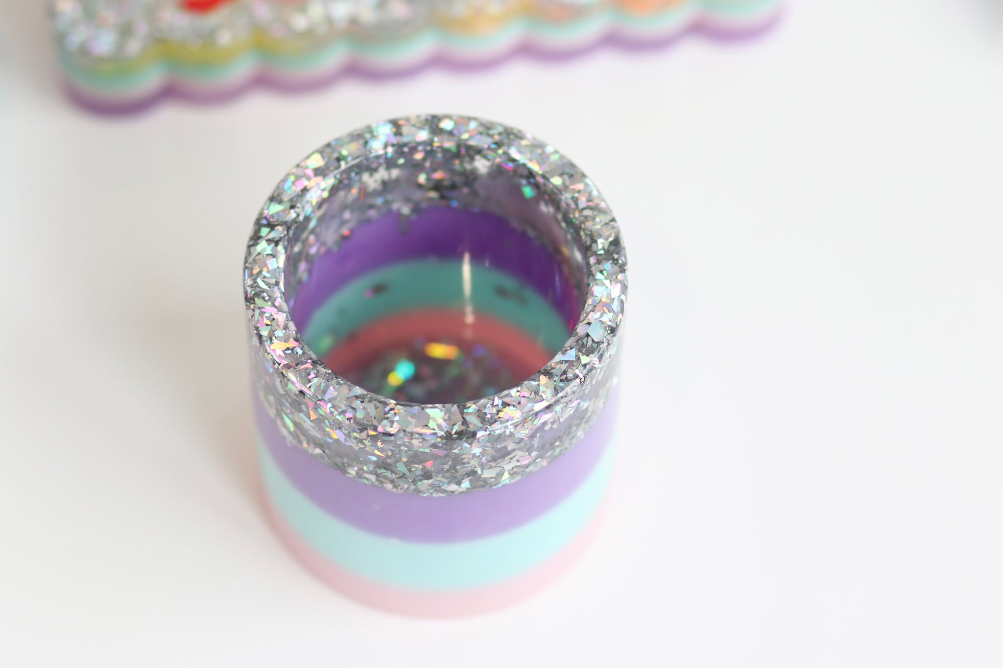 As is with hand made products, resin can contain bubbles, lint, pits and uneven surfaces, this doesn't effect the overall product, rather adds to the uniqueness!