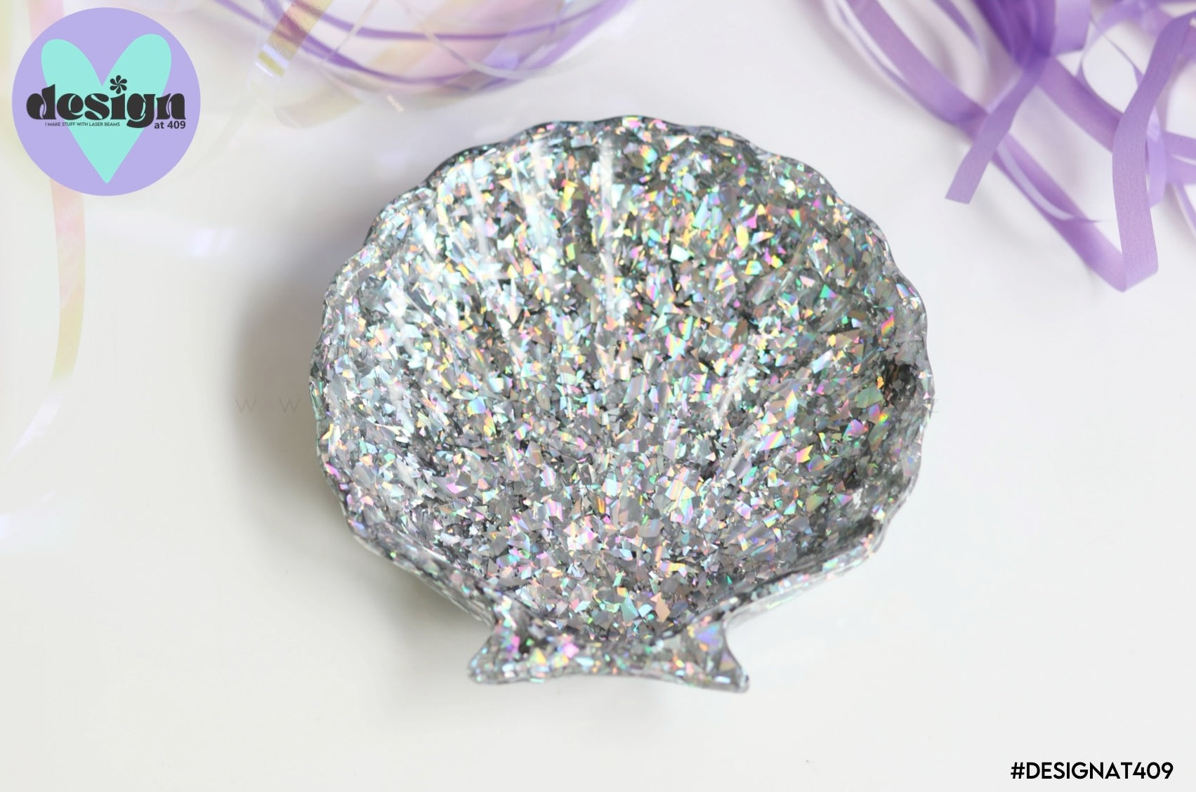 Silver Sparkle Glitter Shell Trinket Dish