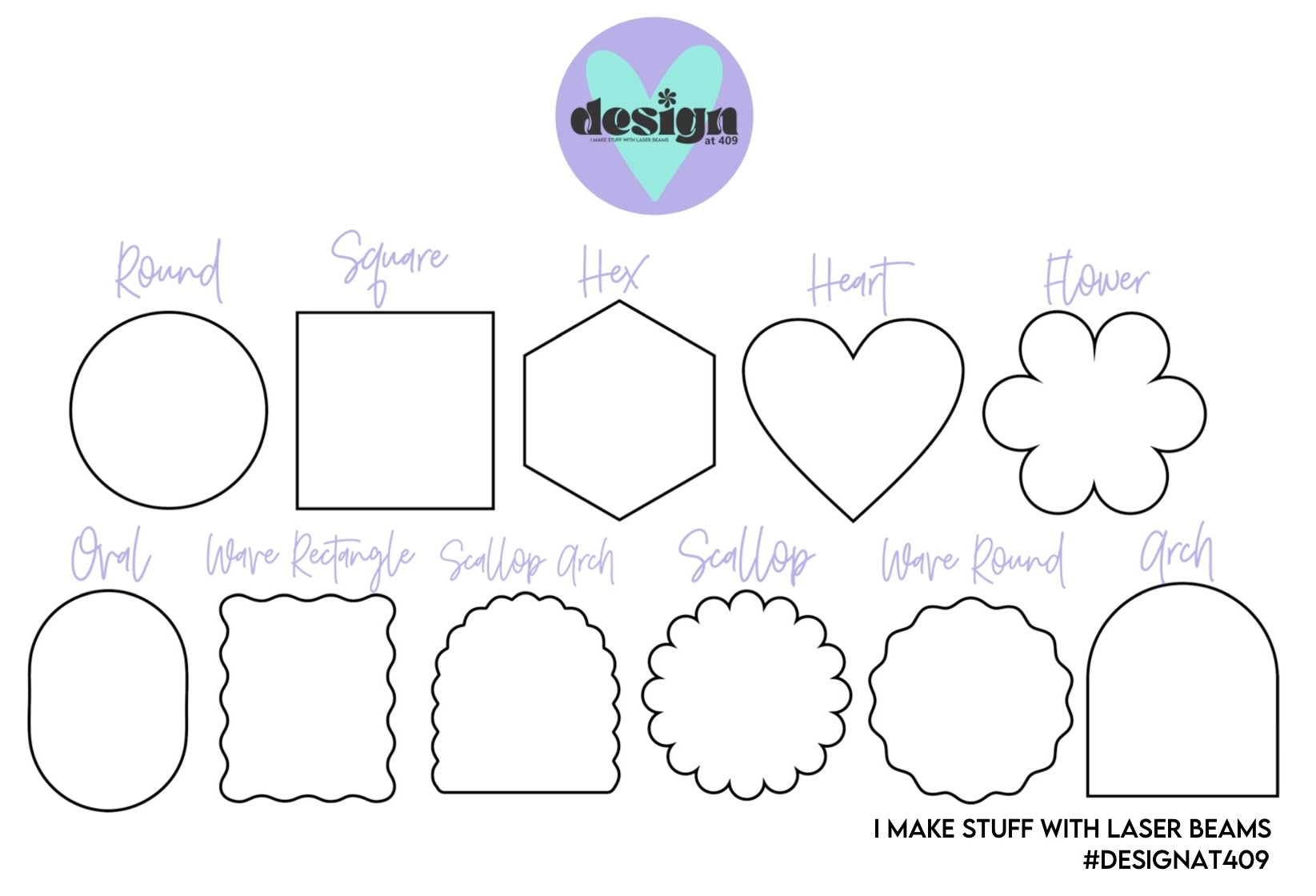 Size Smaller - Round - 50mm x 50mm / Square - 50mm x 50mm / Hex - 50mm across x 56mm height / Heart - 56mm across x 52mm height / Flower - 57mm across x 52mm height / Oval - 41mm across x 57mm height / Wave Rectangle - 45mm across x 53mm height / Scallop Arch - 48mm across x 52mm height / Scallop - 54mm x 54mm / Wave Circle - 53mm x 53mm / Arch - 50mm x 55mm Height